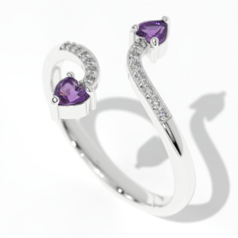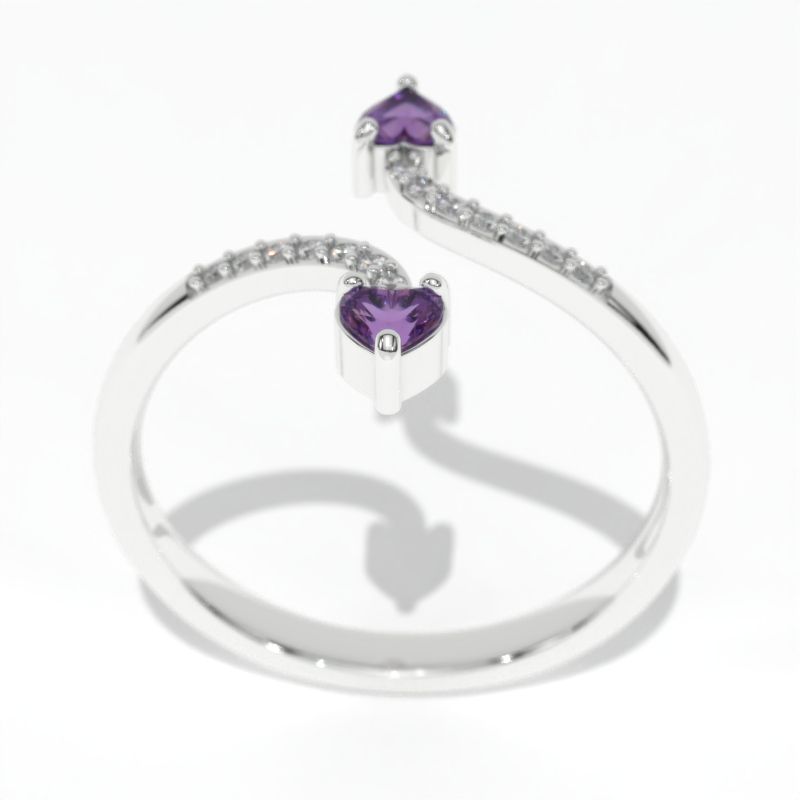 The default design option features Double 3x3mm Created Amethyst Heart Stones and 0.05 CTW  Diamonds  H-Color, SI1-Clarity, VG-Cut, Ex-Polish, VG-Symmetry Center Stone