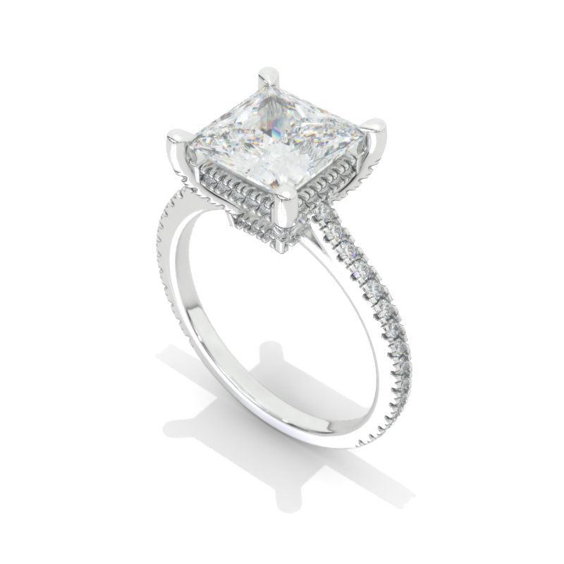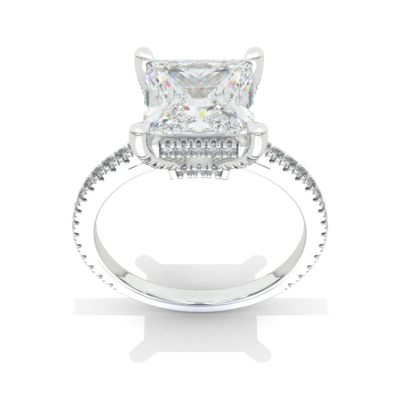 1.5 Carat Princess Cut Moissanite Giliarto Hidden Halo Gold Engagement Ring