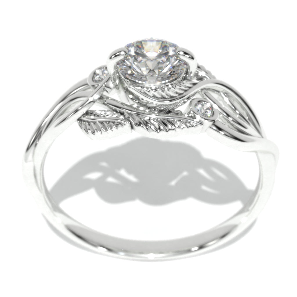 1 Carat Giliarto Moissanite Center Stones Clarity : Sl2, Color: DEF; Shape: Round, VG-Symmetry with 2 Accents Stones in 14K White Gold.