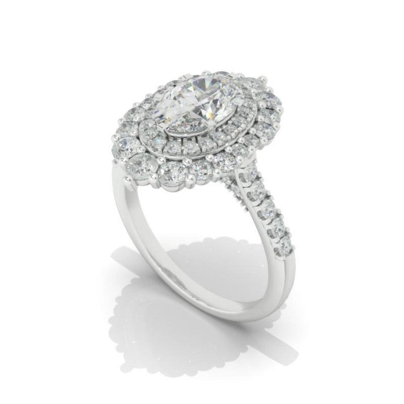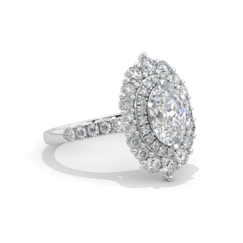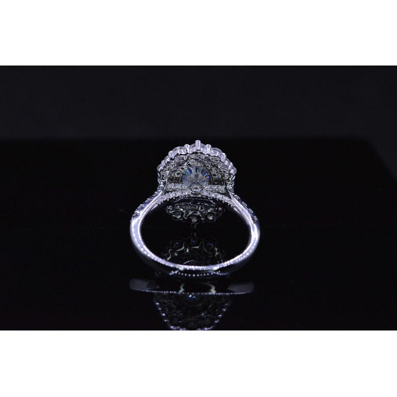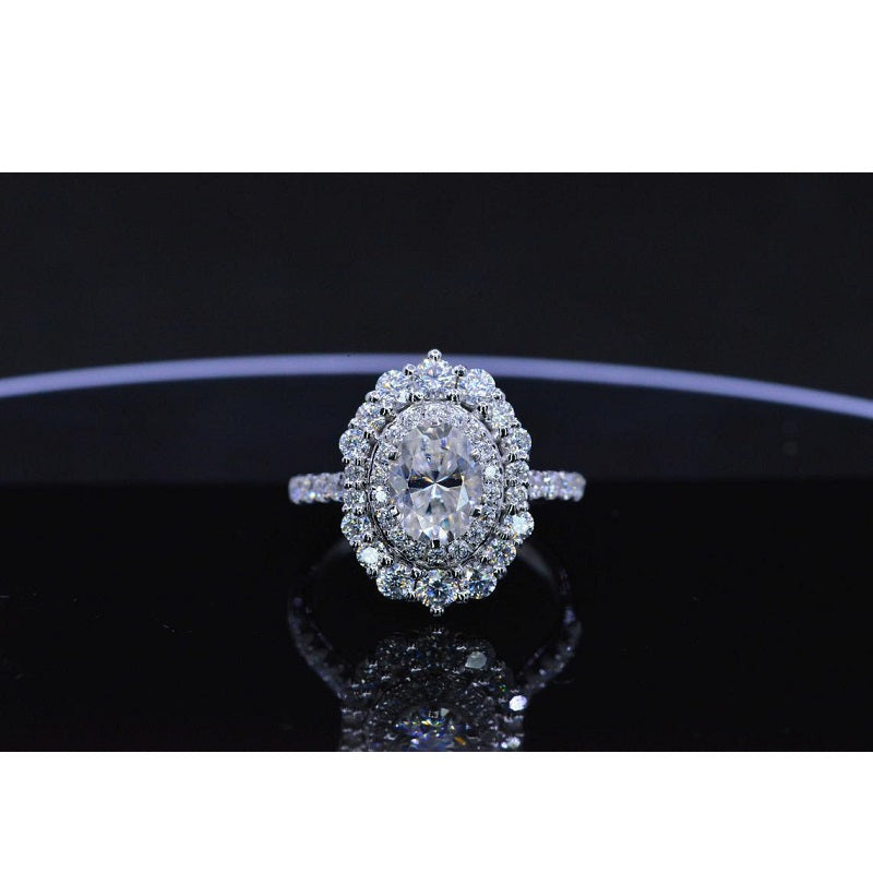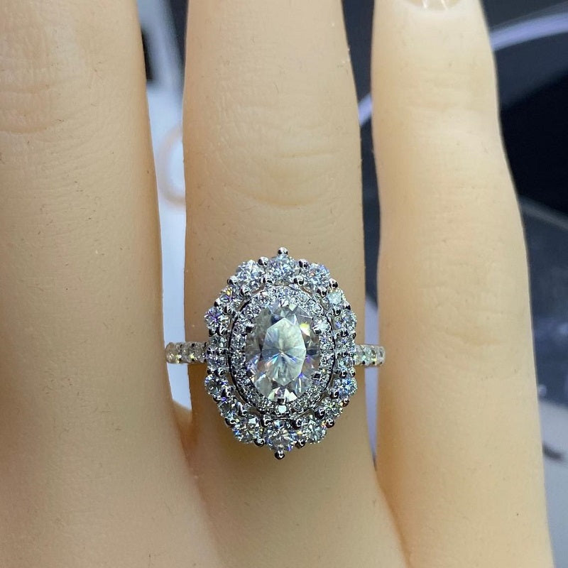 1 Ct Moissanite Double Halo Engagement Ring, Vintage Oval Shape Cut Mo - clio
