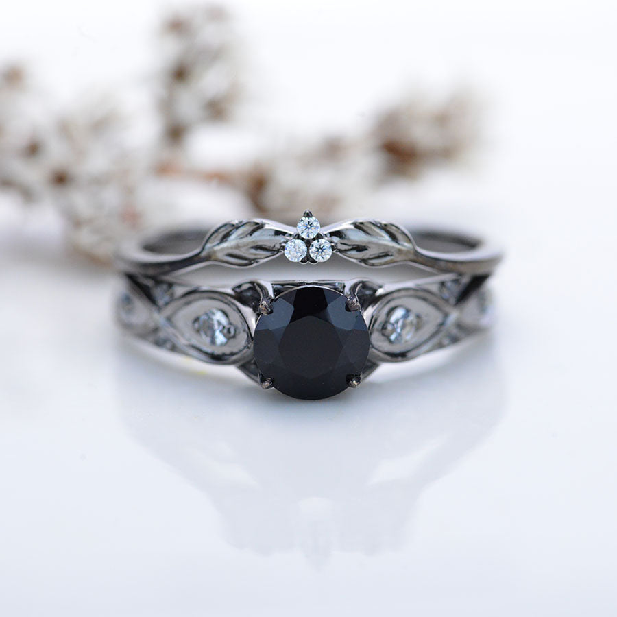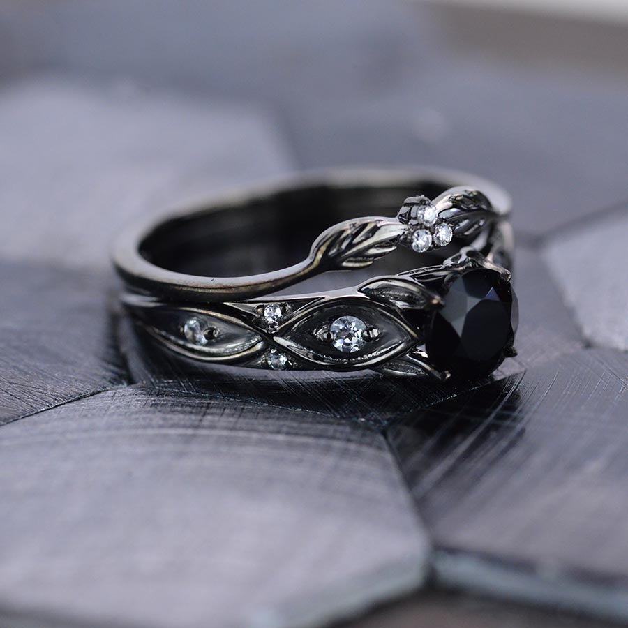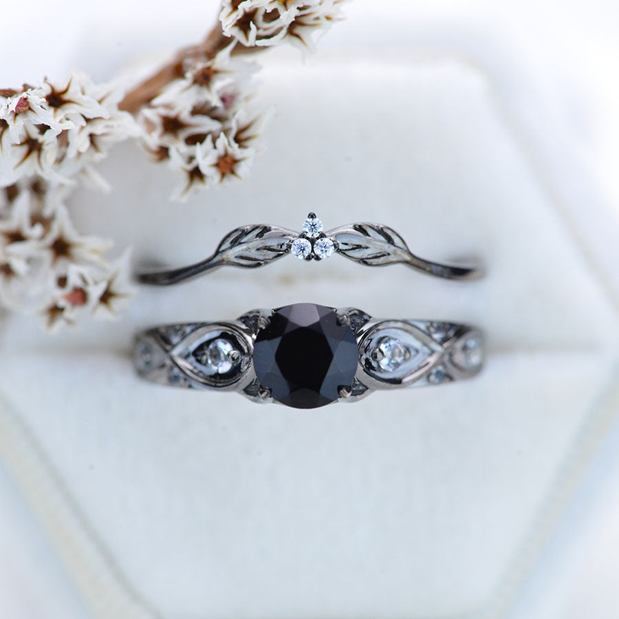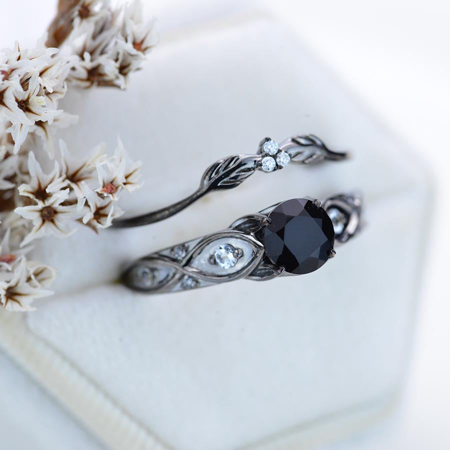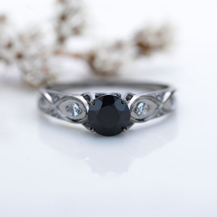 Black Moissanite Center Stone - Round 6 mm, Ex-Cut, Ex-Polish, VG-Symmetry) and 8 - Diamond Accents 0.1 CTW with 14K Black Gold or Black Platinum.