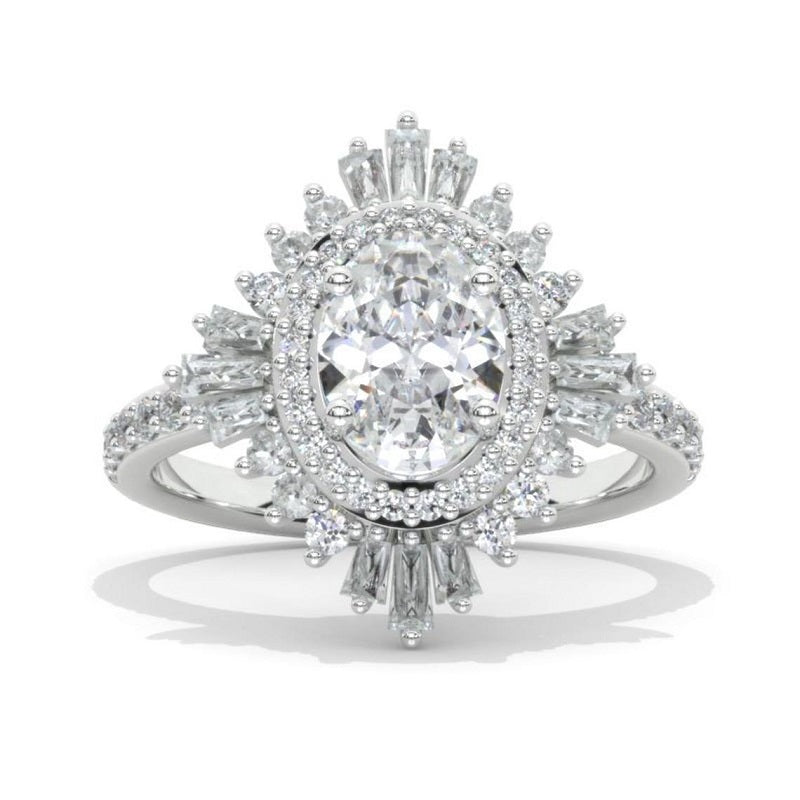 The default design option features 1.5 Carat Moissanite 6x8mm Oval Center Stone