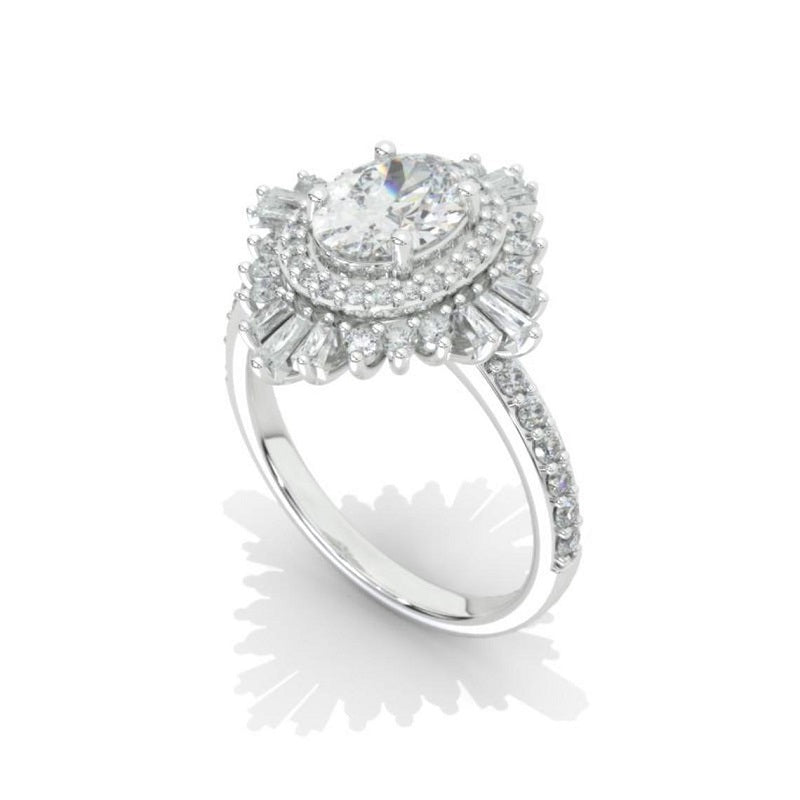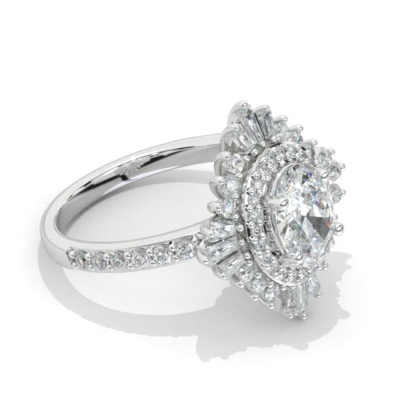 14K Solid Gold Ring 1.5 CT Oval Halo Moissanite Vintage Wedding Ring. Engagement Ring Anniversary Ring, Baguette Double Halo Ring