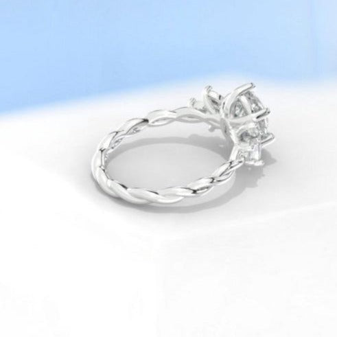 The default design option features 9x7mm Oval Cut Moissanite Stones