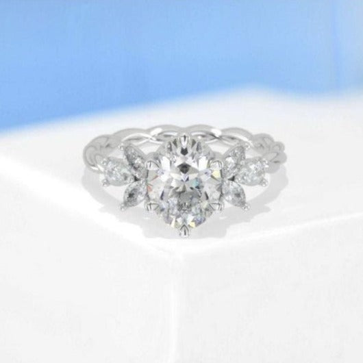 14K Solid Gold Ring 2CT Oval Diamond Imitation Moissanite Wedding Ring - clio