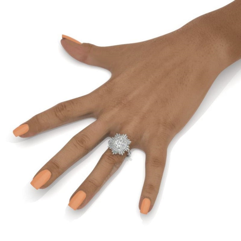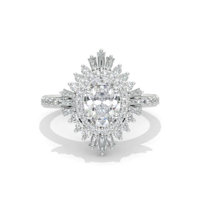 14K Solid Gold Ring 2CT Oval Halo Moissanite Vintage Wedding Ring. Engagement Ring Anniversary Ring, Baguette Double Halo Ring