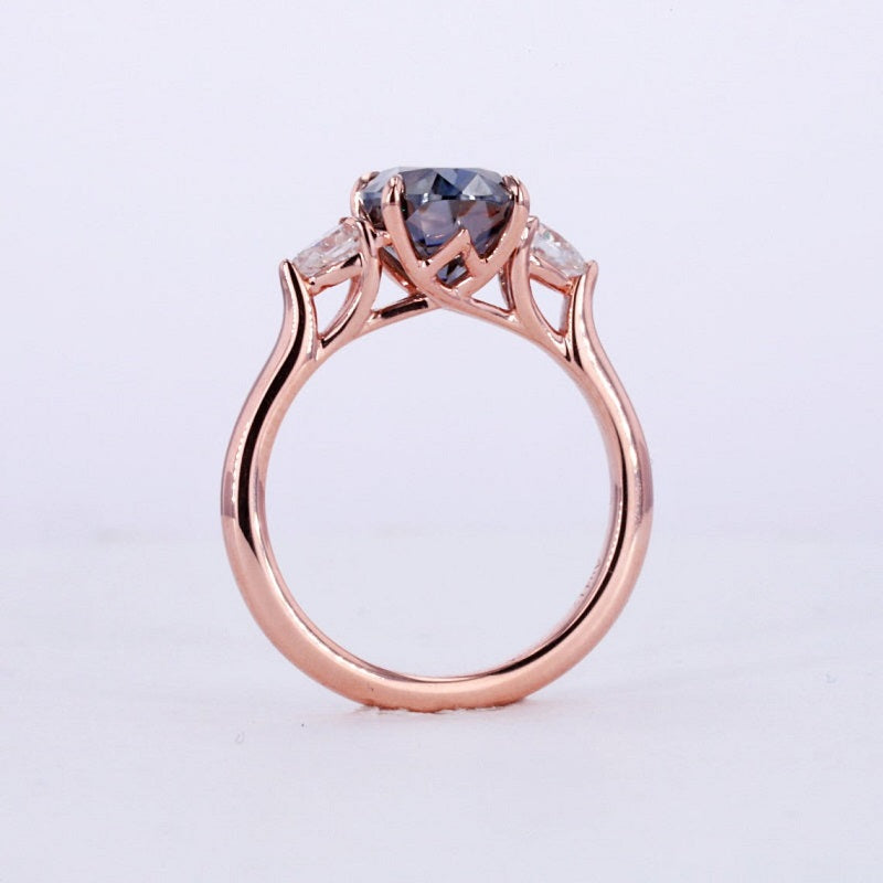 14K Solid Gold Ring. 3CT Oval Dark Gray Blue Moissanite Wedding Ring. Three Stone Moissanite Engagement Ring .Anniversary Ring. Promise Ring