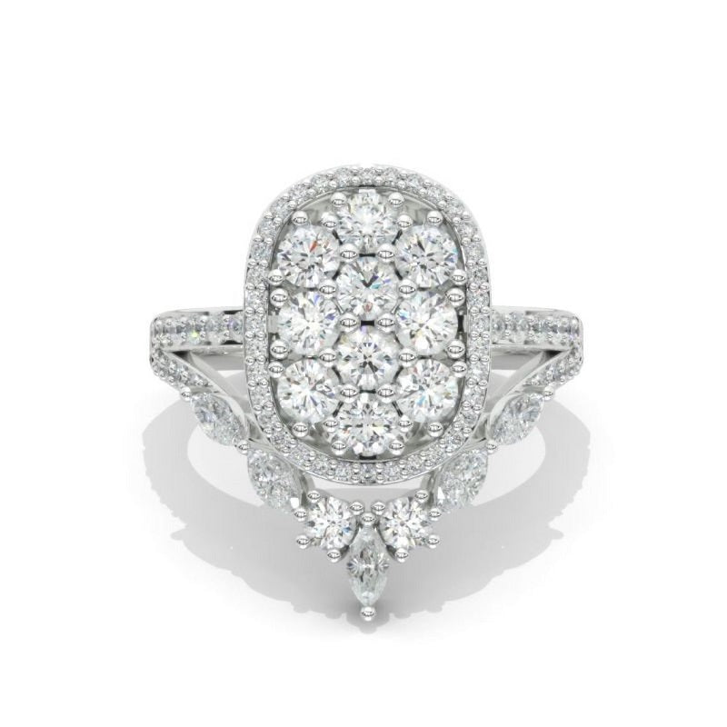 14K Solid Gold Ring 3CTW Moissanite Cluster Oval Halo Engagement Ring - clio