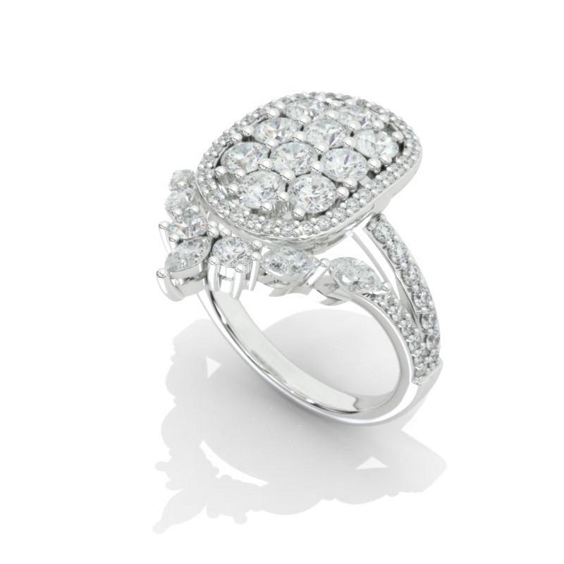 The default design option features 3CTW Cluster Moissanite Stones