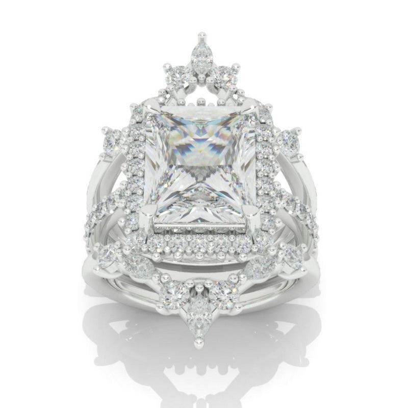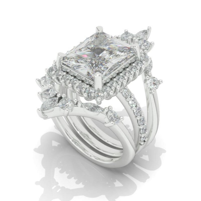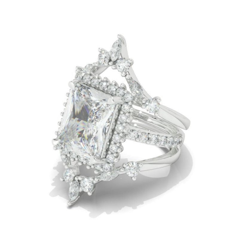 14K Solid Gold Ring 5CT Radiant Cut Moissanite Halo Engagement Ring Set. Set of Three Eternity Gold Ring, Vintage Style Ring