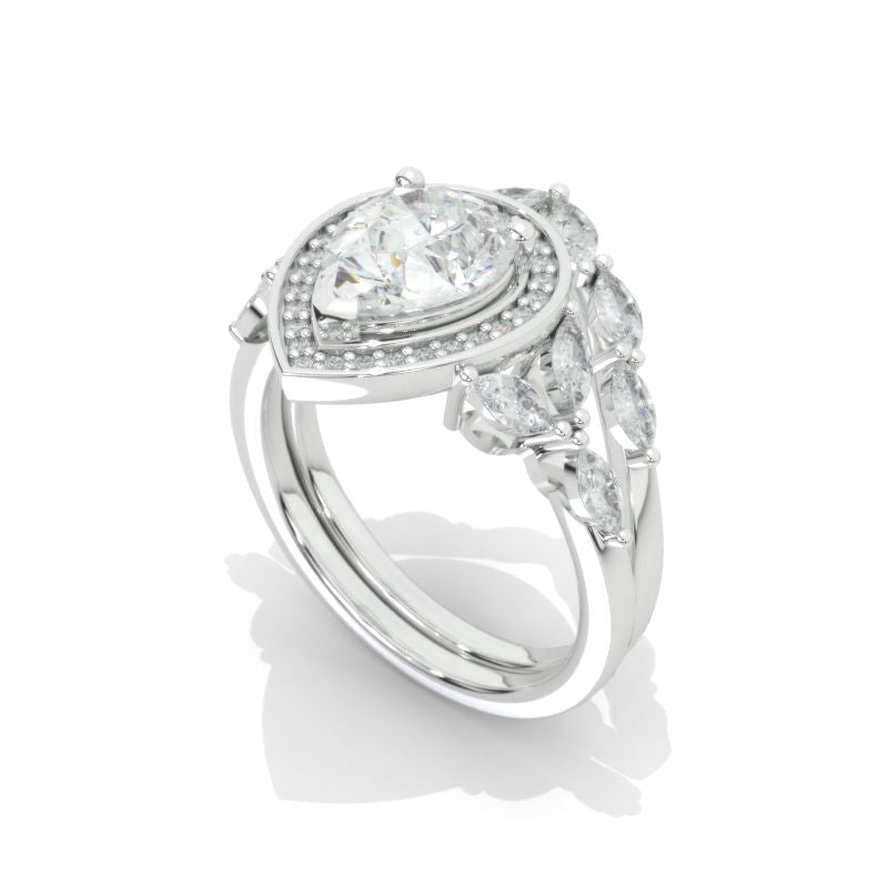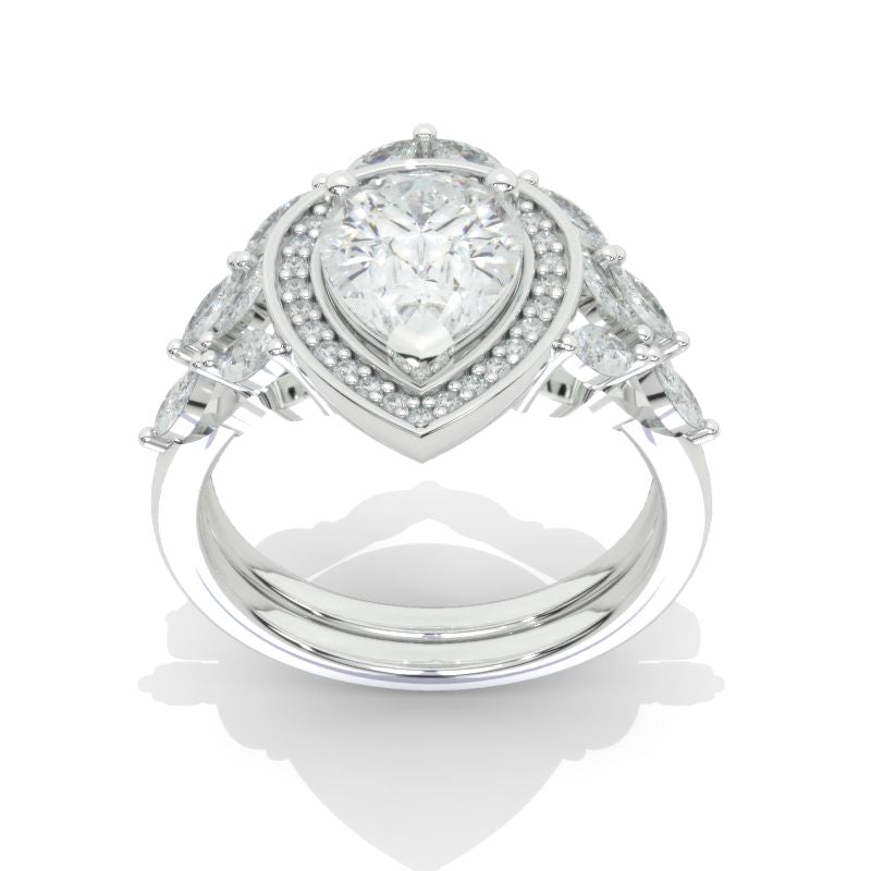 14K White Gold 1.5 Carat Pear Moissanite Halo Twisted Engagement Ring Eternity Ring Set