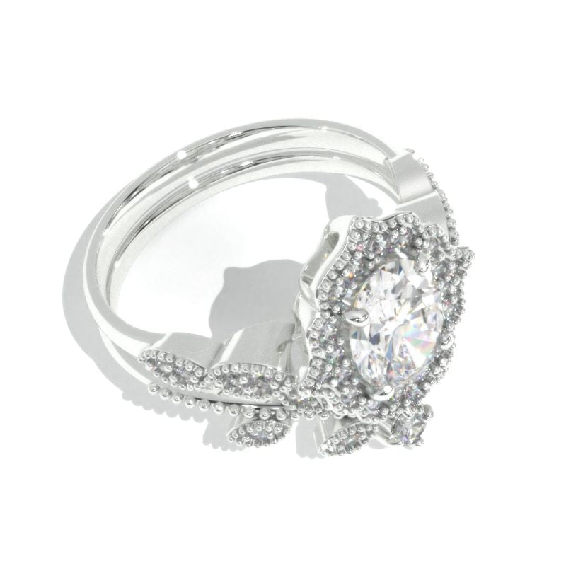 14K White Gold 1.9 Carat Oval Moissanite Halo Engagement Ring Eternity - clio
