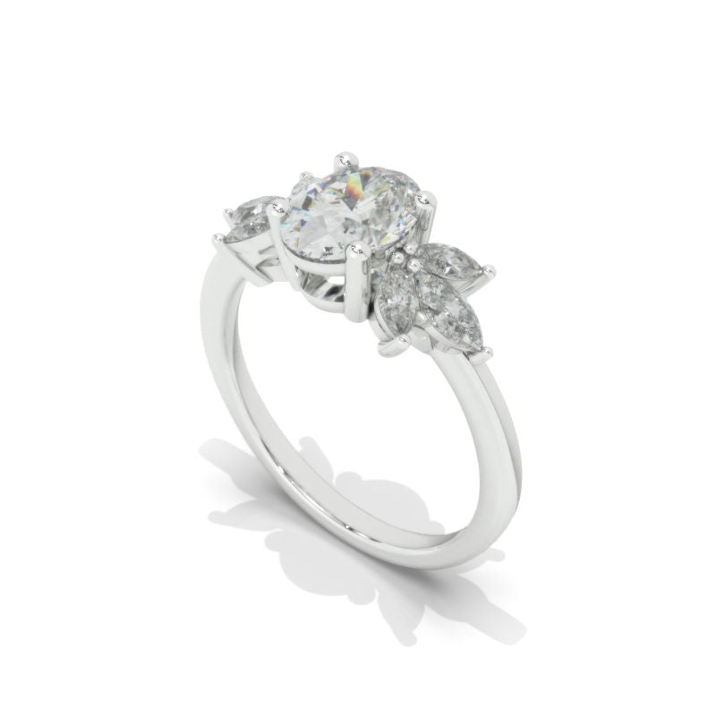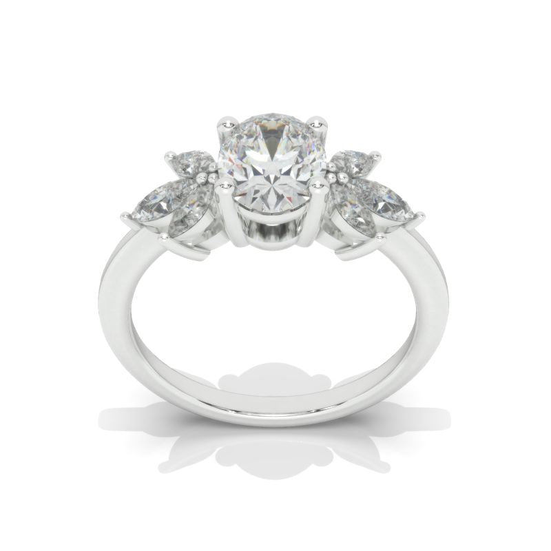 Engagement : 2 Carat Giliarto Moissanite/Forever One/LAB Grown Diamond Oval 9x7 mm DEF- color, SI1-Clarity, VG-Cut, Ex-Polish, VG-Symmetry Center Stone with 4 Colorless 0.1 CTW Moissanite