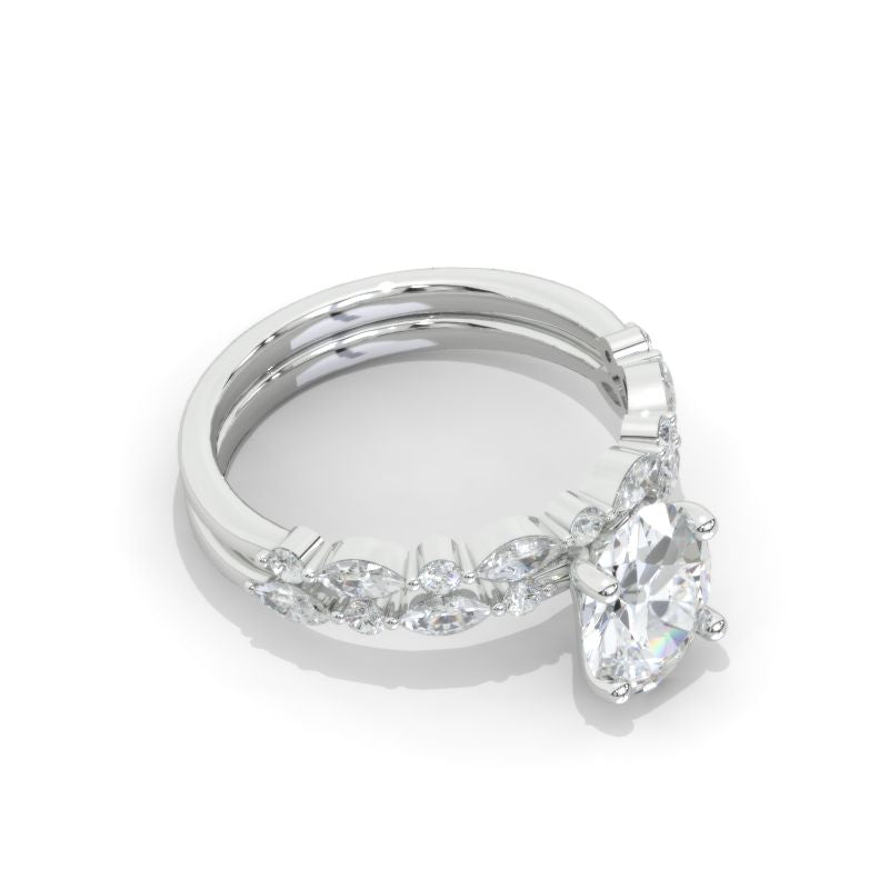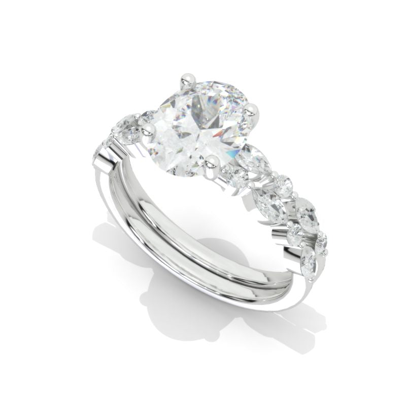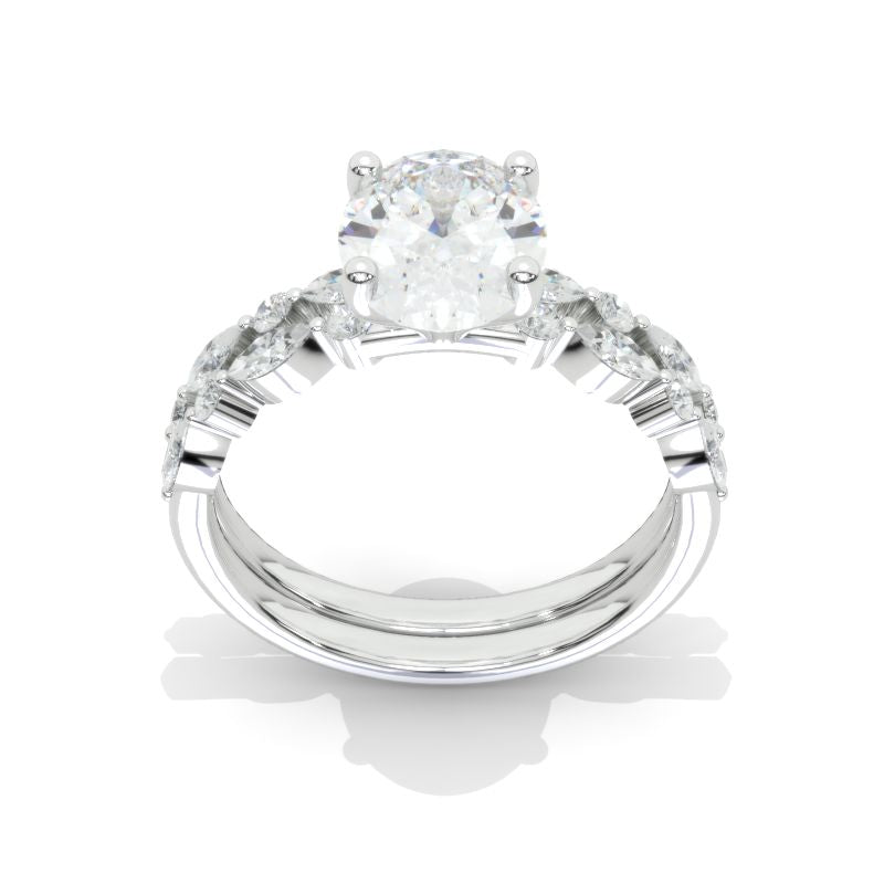 14K White Gold 2 Carat Oval Moissanite Vintage Engagement Ring, Eternity Ring Set