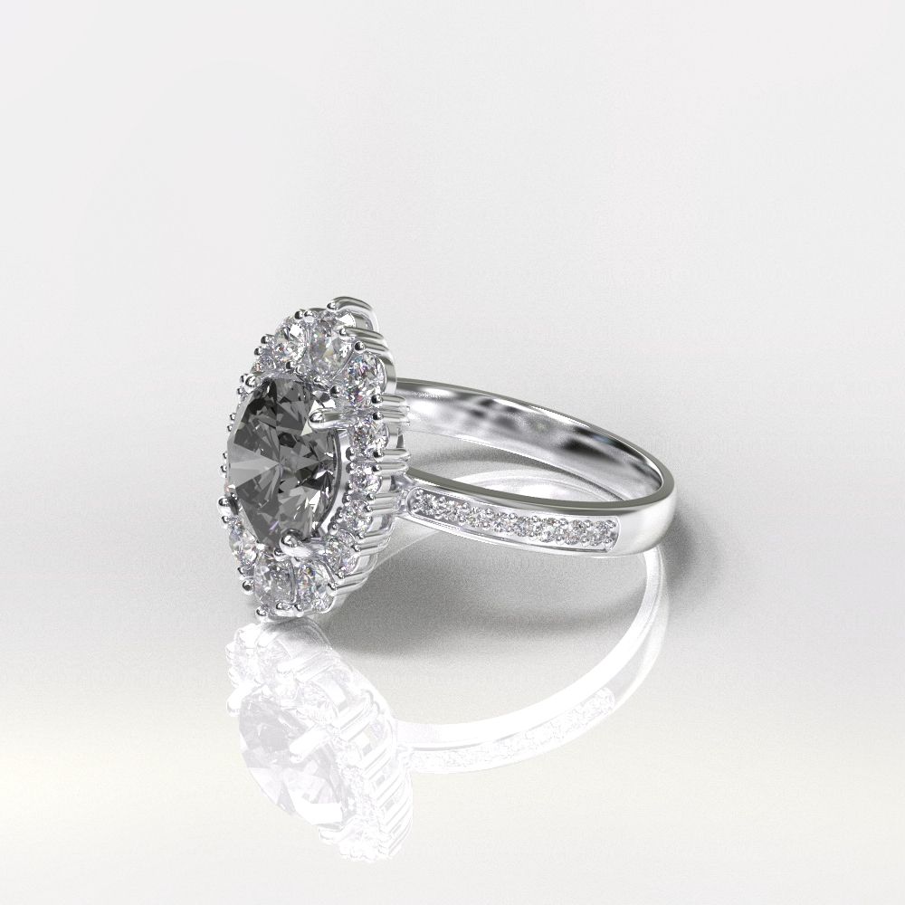 14K White Gold 2 Carat Round Gray Moissanite Halo Engagement Ring - clio