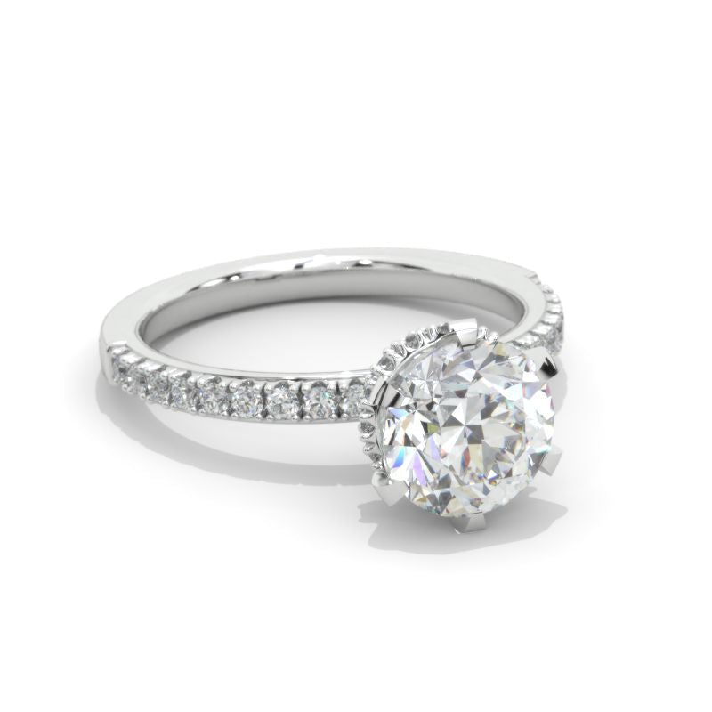 14K White Gold 2 Carat Round Moissanite Six Prong Hidden Engagement Ring