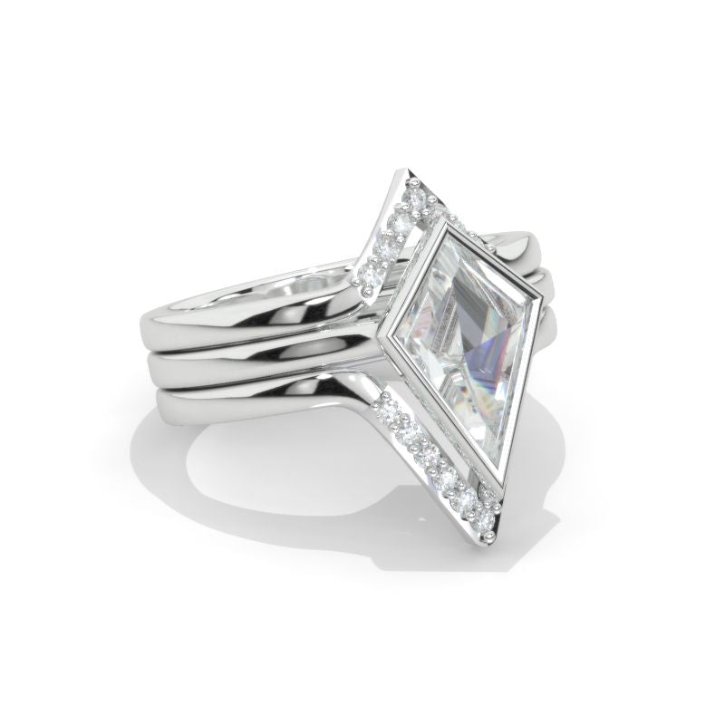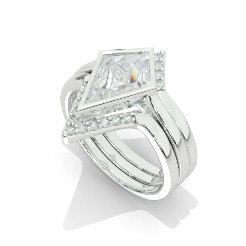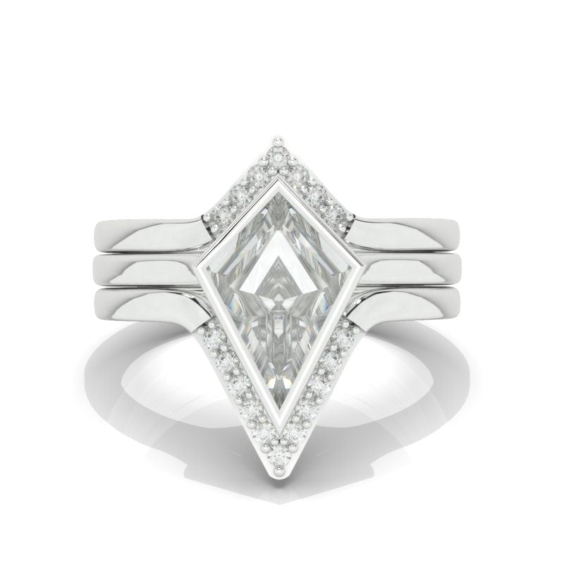 14K White Gold 3 Carat Kite Moissanite Halo Engagement Ring, Three Rings Set