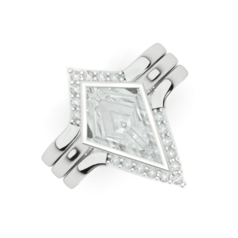 14K White Gold 3 Carat Kite Moissanite Halo Engagement Ring, Three Rin - clio