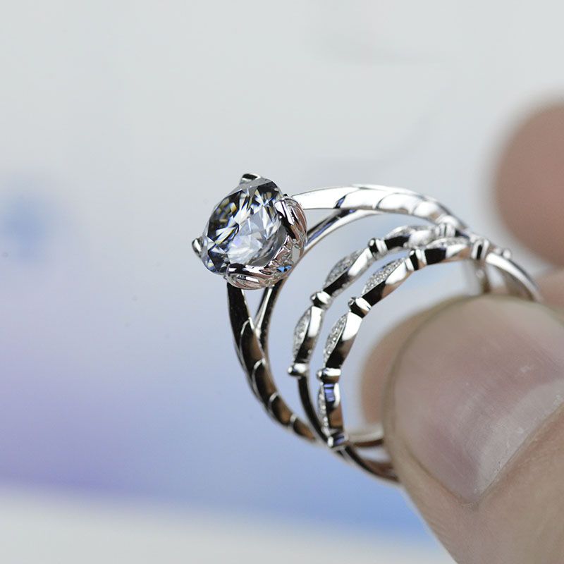 2 Carat Dark Gray-Blue Moissanite Engagement Eternity Three Rings Set - clio