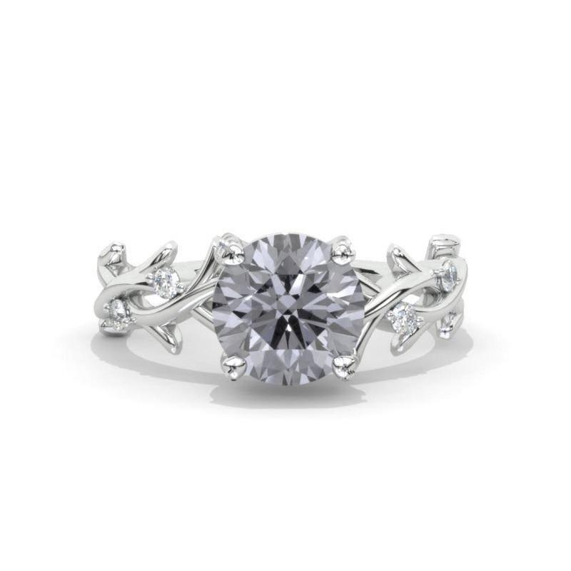 2 Carat Gray Moissanite Leaf Engagement Ring. Rose Gold Floral Twig Ri - clio