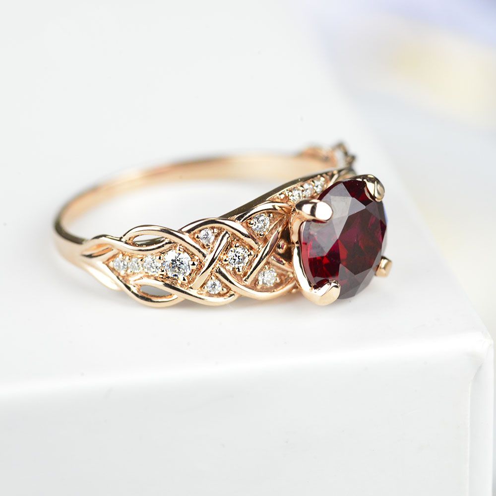 This one of a kind ring features beautiful lattice design which embeds gorgeous jewels of your choice and elegantly twists into the main center stone.