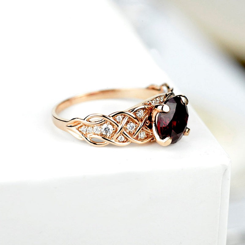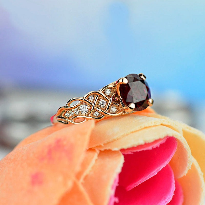 2 Carat Red Ruby Ring Round Cut Rose Gold Ring July Birthstone Ring Engagement Ring for Her Diamond Accented Side Stones Ring Unique Custom