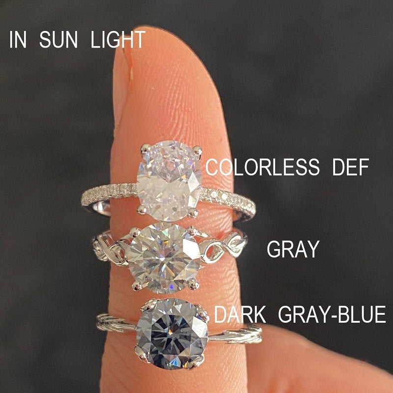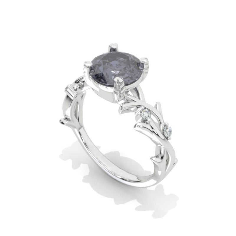 2 Carat Round Dark Grey-Blue Moissanite Floral Twig Design White Gold - clio