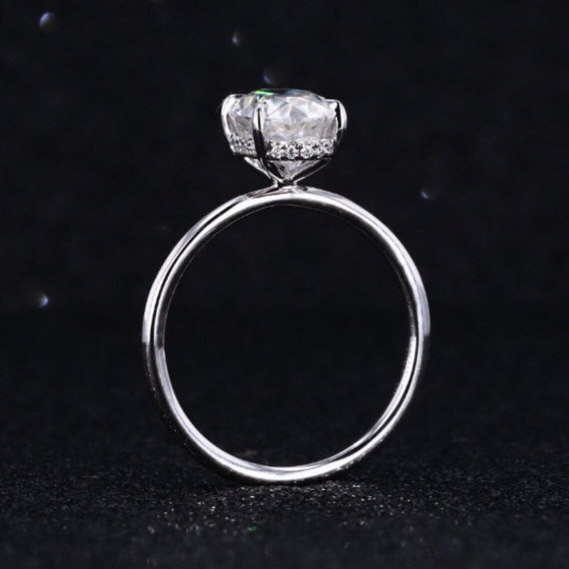 Gem Type : Moissanite Carat : 3.5 CT Color : D Shape : Oval Ice Crushed Cut Clarity : VVS1 Luster : Excellent Main Stone MM : 11x8 MM Accent Stones : 0.1 CTW H- Colorless Moissanite -26 pieces