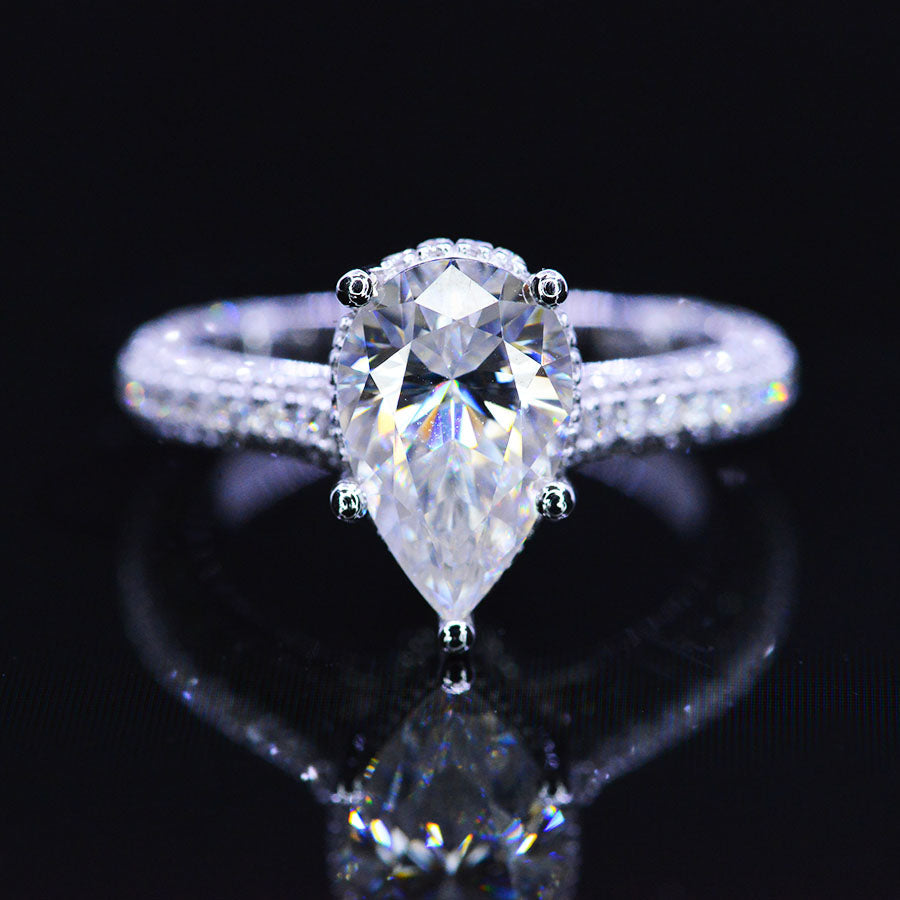 4 Carat Pear Cut Giliarto Moissanite Hidden Halo Gold Engagement Ring