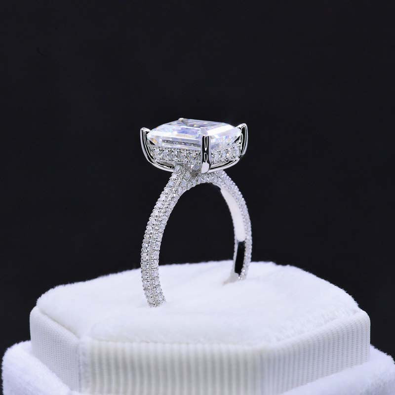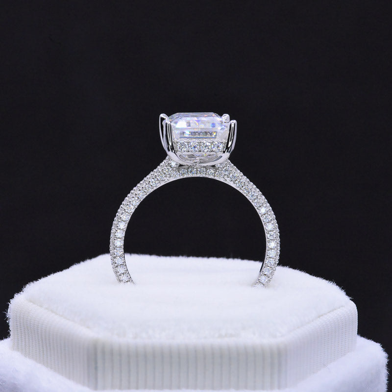 The default design option features approximately 5 Carat Giliarto Ethically Lab-Grown Alexandrite Emerald Shaped Step Cut 11x9mm , VVS1-Clarity, VG-Cut, Ex-Polish, VG-Symmetry Center Stone set with 0.8 CTW -134 Moissanite Accent Stones D-Colorless, SI1-Clarity, VG-Cut, Ex-Polish, VG-Symmetry in 14K White Gold