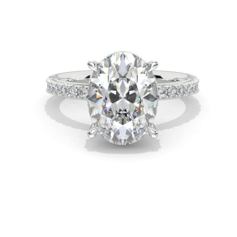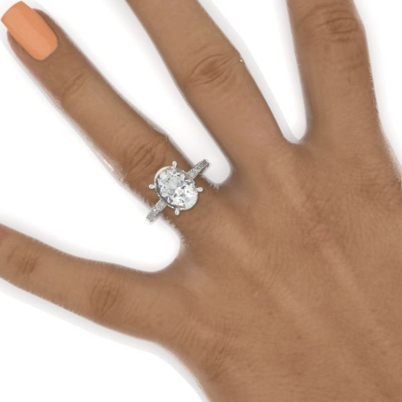6Ct Oval Moissanite Engagement Ring, Oval Cut Shape Dainty Engagement Ring, Moissanite Hidden Halo Pave accents ring