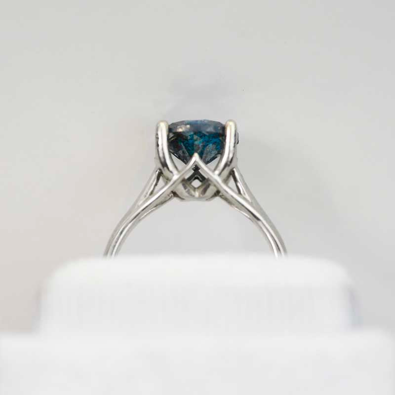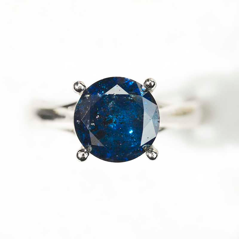 Compelling study of the universe is embedded in this one-of-a-kind masterpiece. With very rare genuine blue diamond in the center, it is not only fine gemstone jewelry, but a particle of galaxy captured within. 7 to 8 mm Round Shape Genuine Blue Diamond in 18K White Gold Setting.