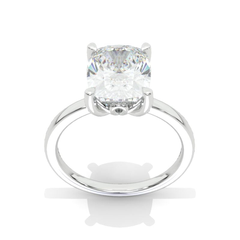 The default design option features 10x8mm Cushion Cut Giliarto Moissanite/LAB Grown Diamond Center Stone D -color, SI1-Clarity, VG-Cut, Ex-Polish, VG-Symmetry