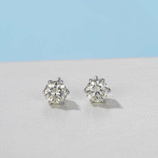 Two 4mm, 5mm, 6mm, 7mm, 8mm each moissanites, set in a four-prong setting.