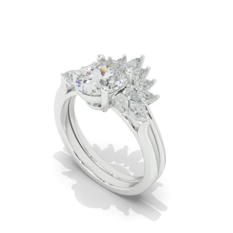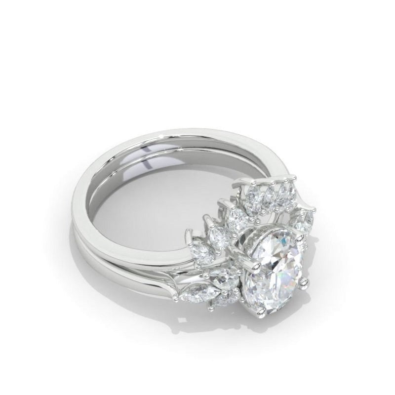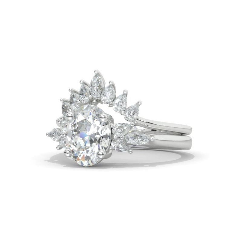 Oval Moissanite Engagement Ring Set, Vintage Unique White Gold Engagement Ring, Women Marquise Wedding Bridal Anniversary Set Gift