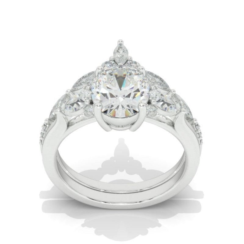 The default design option features 8x6mm Oval Cut Moissanite Stones