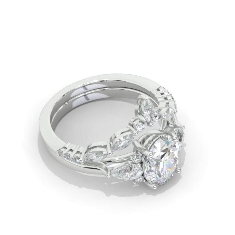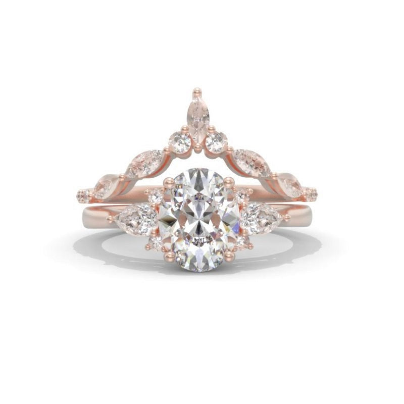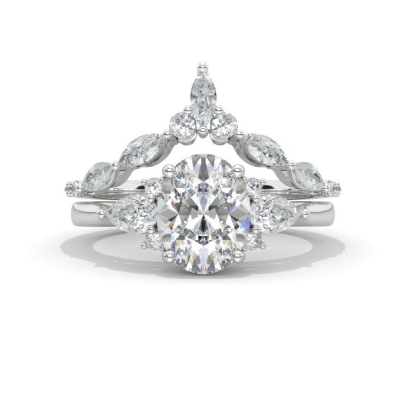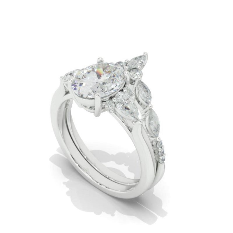 Oval Moissanite Engagement Ring Set, Vintage Unique White Gold Engagem - clio