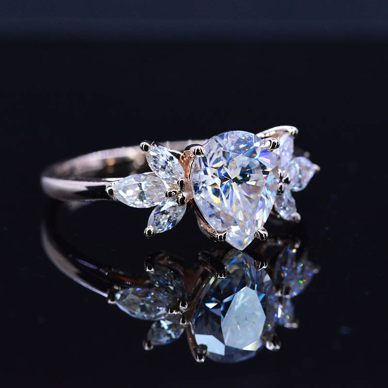 Pear Shaped Moissanite Engagement Ring. Vintage Unique Marquise Cut Cl - clio