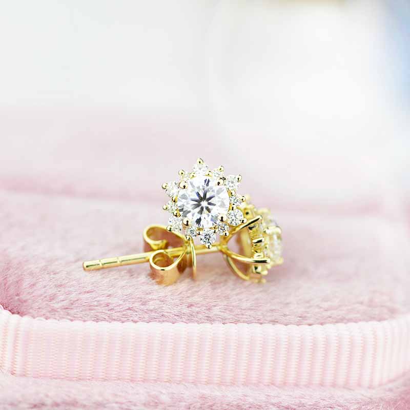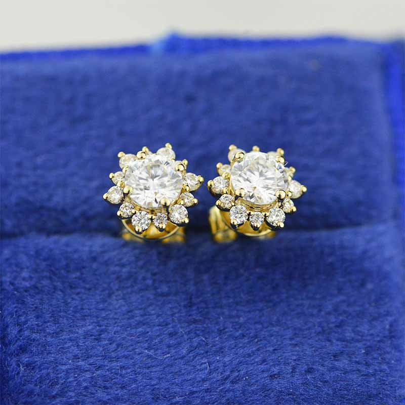 Two 4mm,5mm,6mm,7mm, 8mm each moissanites, set in a four-prong halo setting.