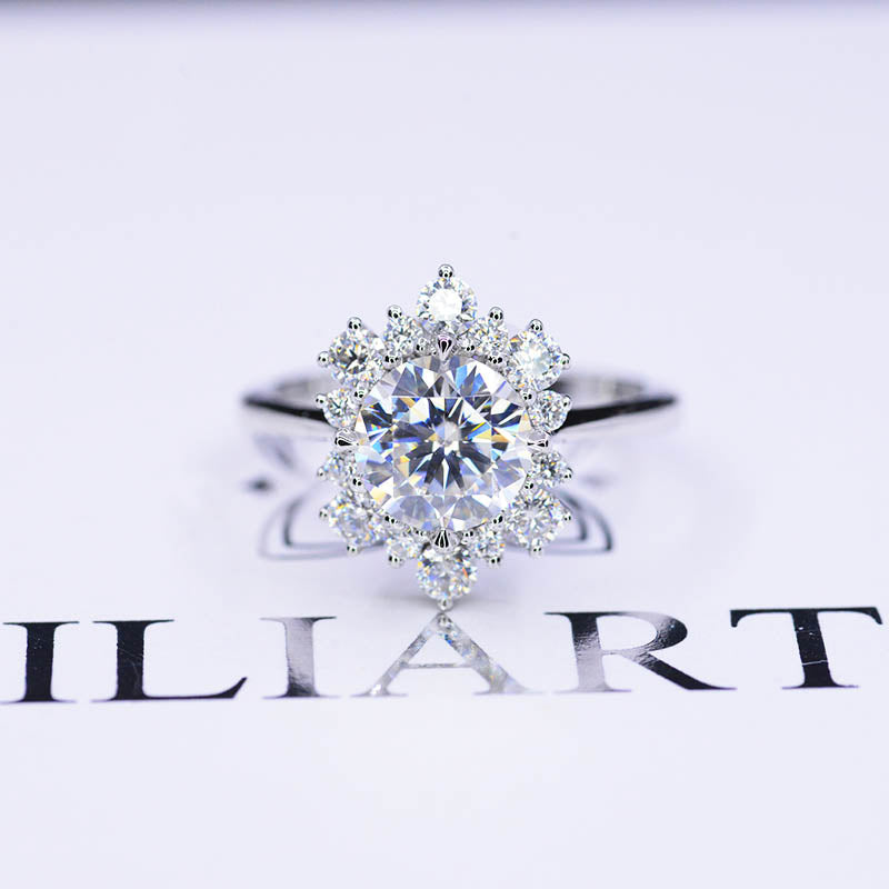 The default design option features 8mm Giliarto Moissanite Center Stone D - Colorless, SI1-Clarity, VG-Cut, Ex-Polish, VG-Symmetry