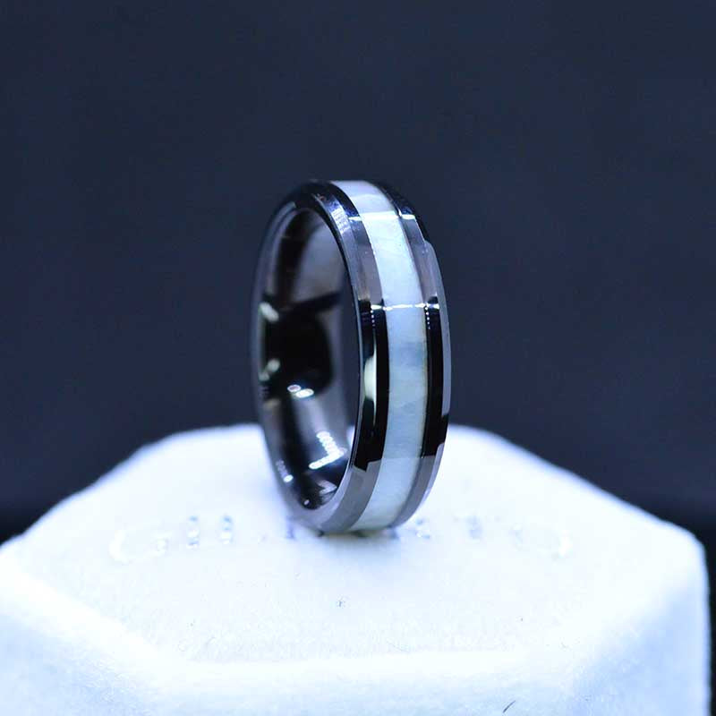 Tungsten Carbide Ring with White Shall Inlay - clio