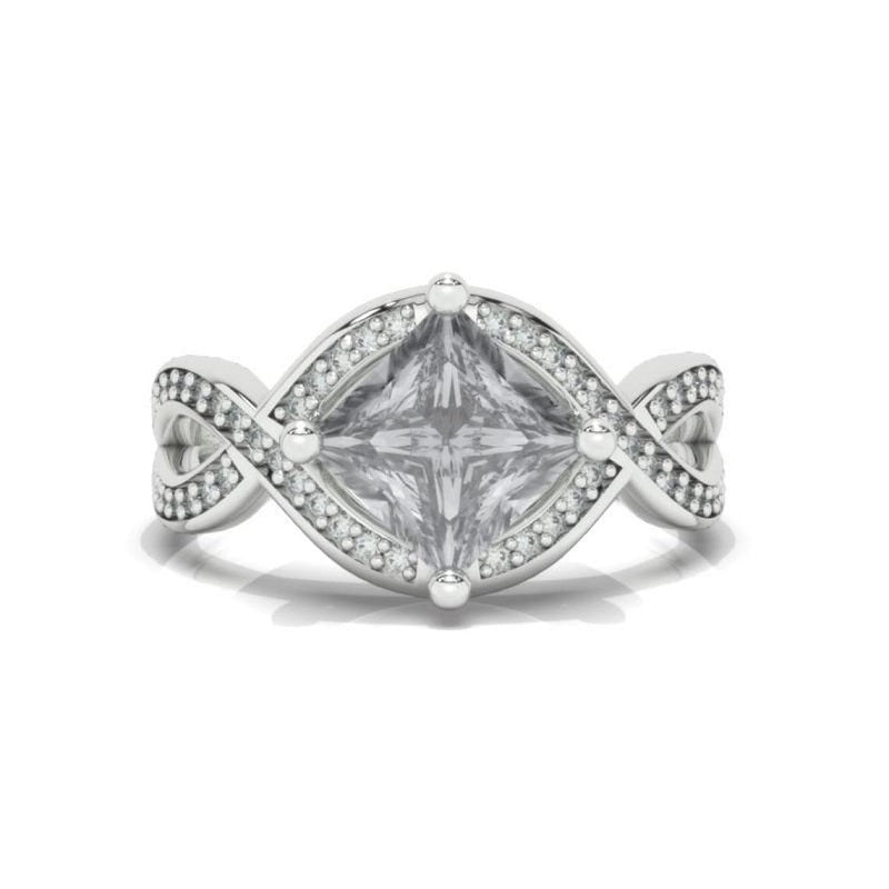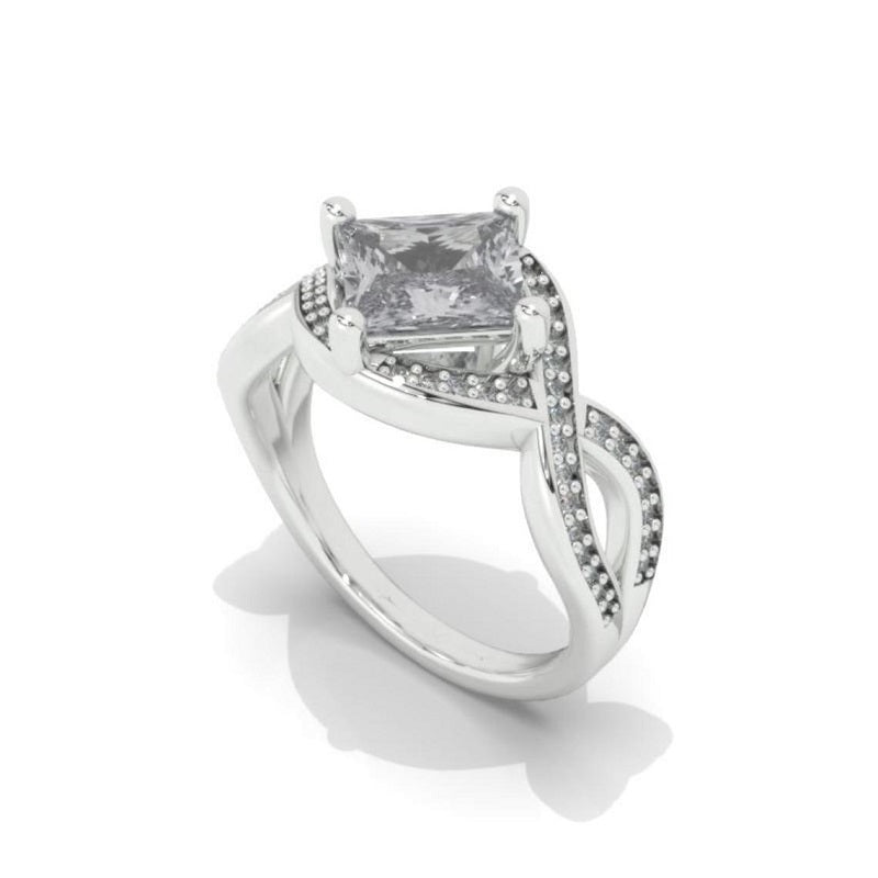 2Ct Princess Cut Dark Blue Grey Gray Moissanite 14K White Gold Engagement Ring Twisted Shank Gold Ring Gray/Blue Shade Ring