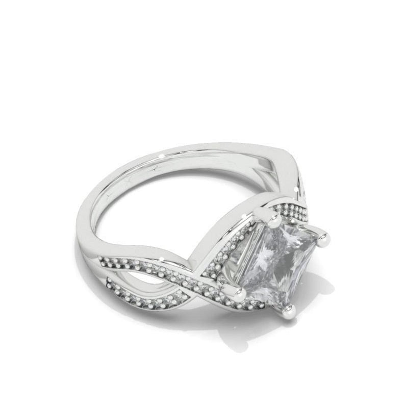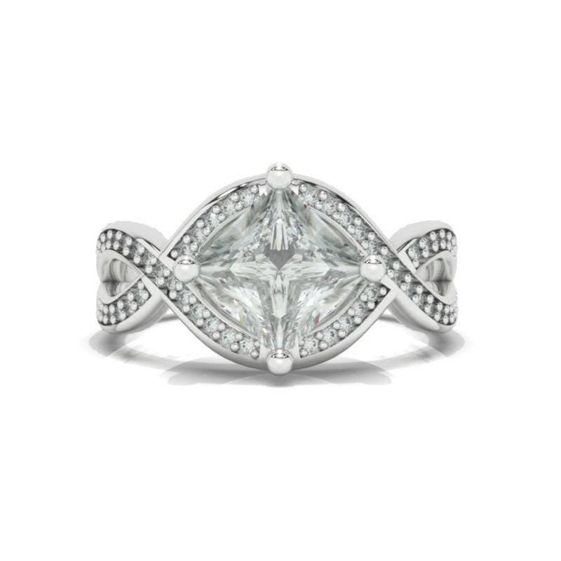 The default design option features 7x7mm Princess Cut Moissanite Stones,